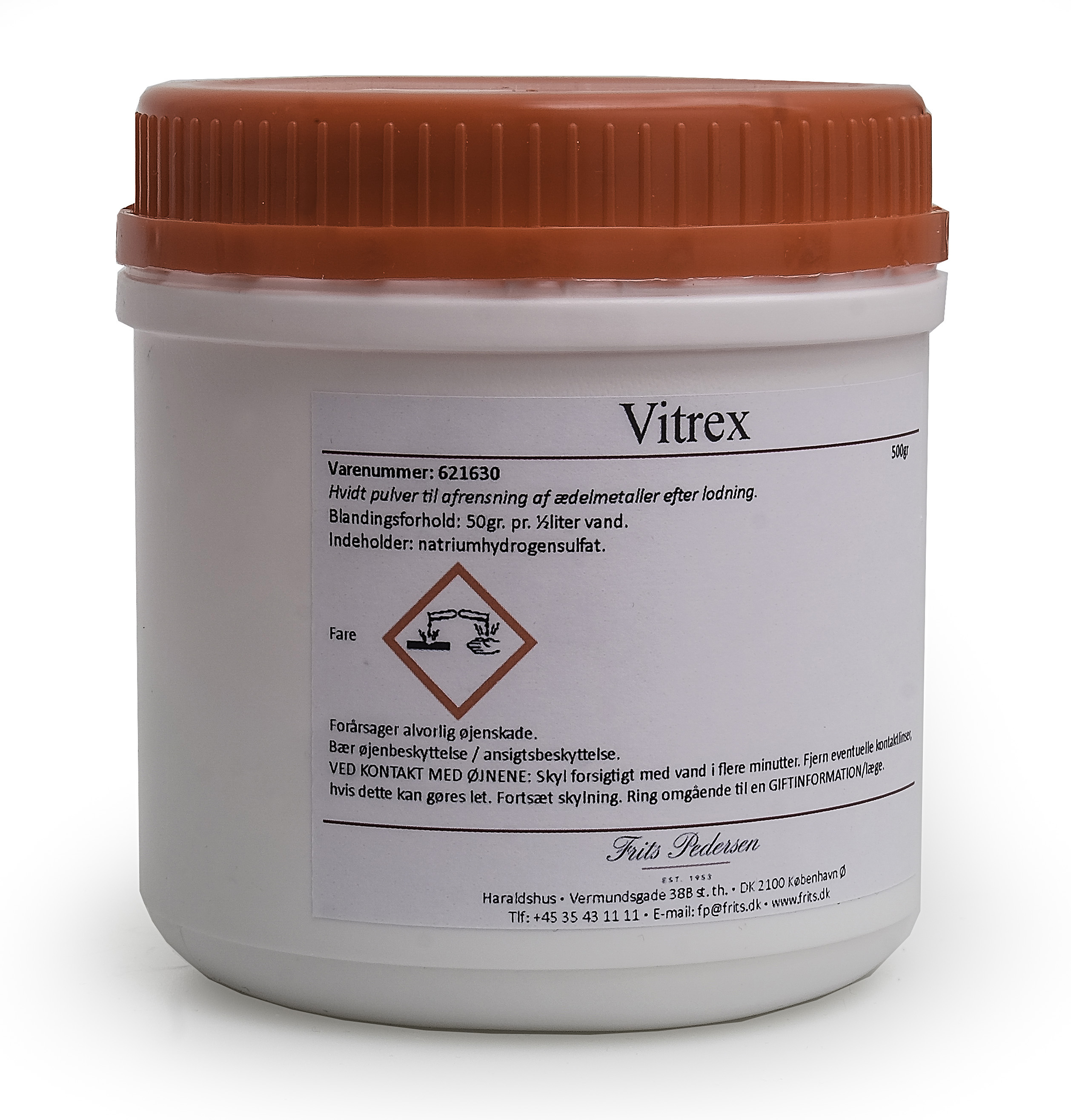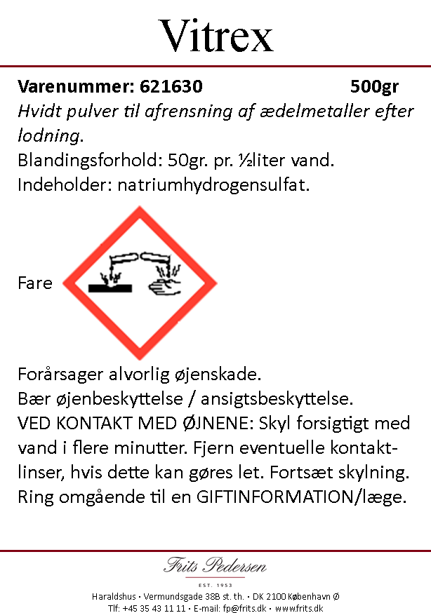 Vitrex er et afsyringsmiddel til metaller der erstatter svovlsyre. Pulveret blandes med vand og er klar til brug. Vitrexpulver kan med fordel bruges samme med en syrepotte med varme.