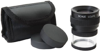 Luppen har justerbart fokus, og leveres med en kombineret millimeter/tomme måleskala. Måleskala kan udskiftes til andre typer skalaer.