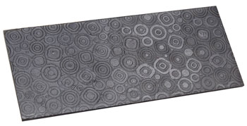 Valeplade med cirkel mønster på den ene side. Valsepladen gør det muligt at valse mønster ned i bløde metaller som for eksempel sølv. Valsepladen er udført i hærdet stål.
