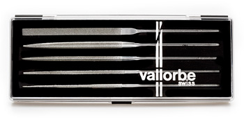 Super lækkert kvalitets file sæt fra Vallorbe. Filene er belagt med et meget fint og jævnt lag af diamant. Sættet består af 5 stk. nålefile. halvrund, trekant, firkant flad og rund.