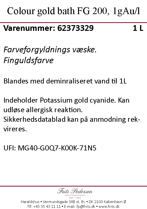 62373329 SDS Farve forgylding 1L FG 200, 1 g Au L - FP - DK