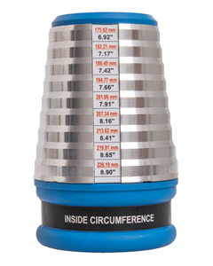 Til at måle indvendig rund armringe. Måler i omkreds og diameter. Lavet i metal og plast.