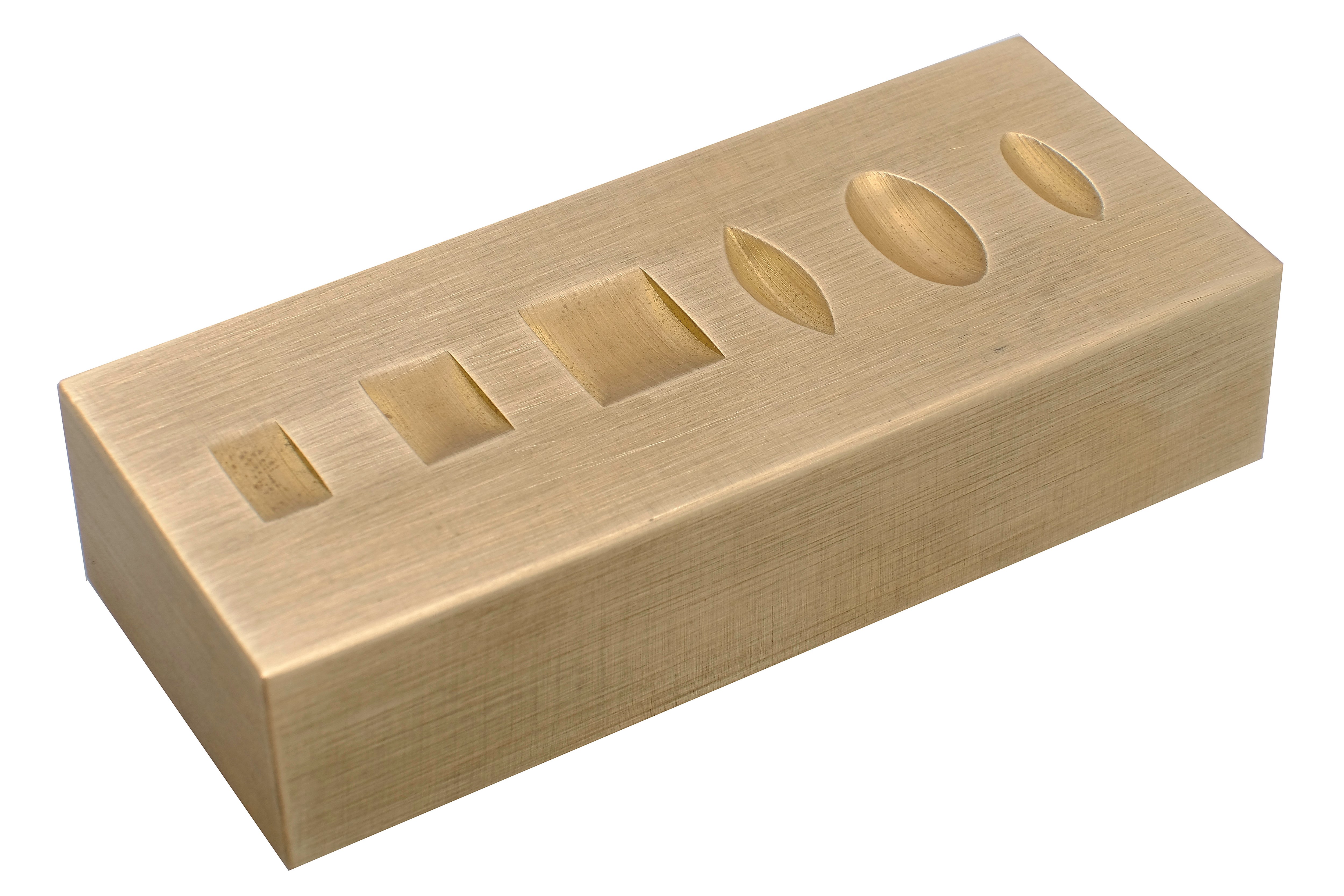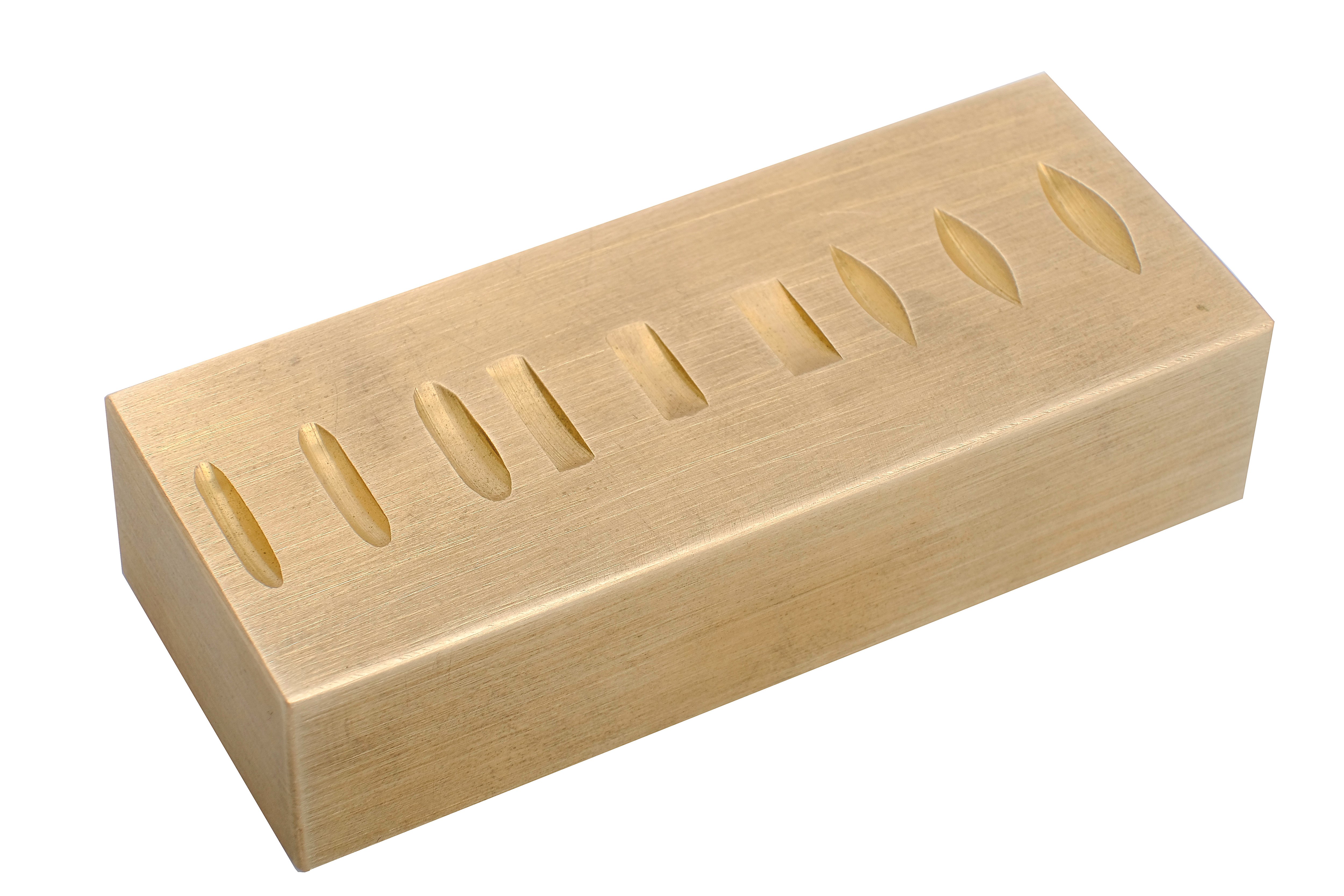 Til stempling af ringe og andre former. Blokken har riller med forskellige profiler på begge sider.
