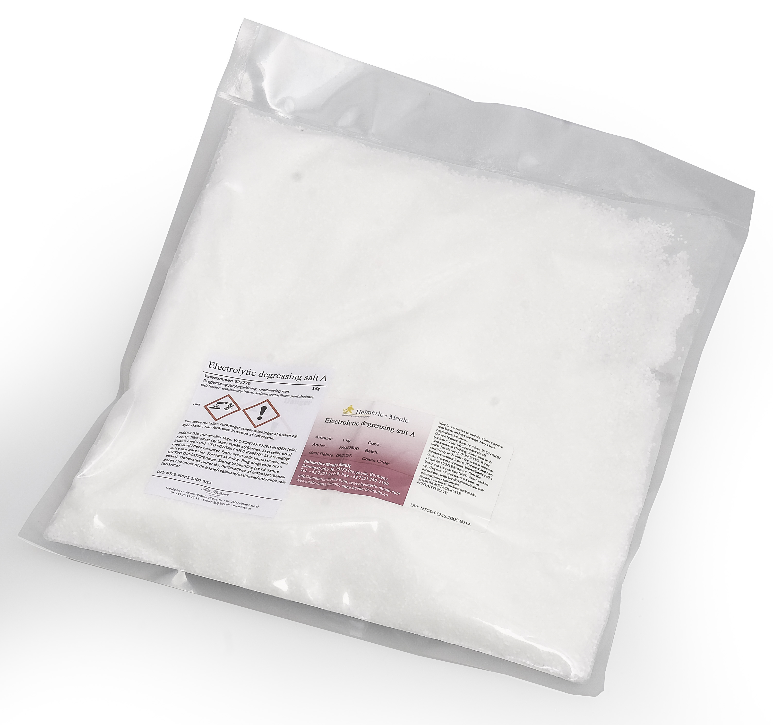 Galvanisk affedtning. (Electrolytic degreasing salt A)