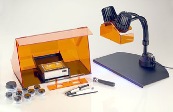 In order to grant optical control during curing without putting a heavy strain to the eyes of the user the DP2 is